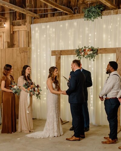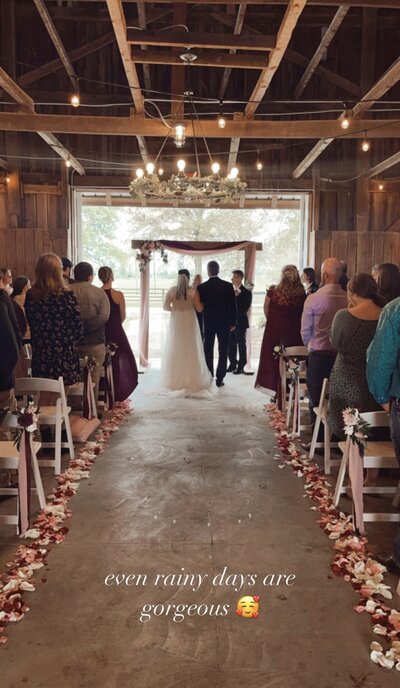 We offer a white ceremony backdrop rental. Ask a Hawks Nest team member for more information about adding this to your rental. You can also leave the barn doors open for warm weather days.